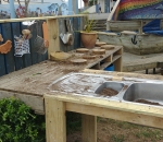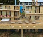 We managed to sand and paint our new Loose parts container, create an amazing play space behind rooms 1-3 along with some invitations to play on our lower court in the form of pretend kitchens and little digging/exploring gardens. On the top field an amazing fairy garden was begun as well as the construction of a very cool bivouac/ shelter and some pallet huts. Some bright inviting colour was added to the junior playground and a marble wall was begun.