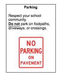 Please be considerate when street parking near the school. We have received complaints from neighbours regarding parking across driveways.
