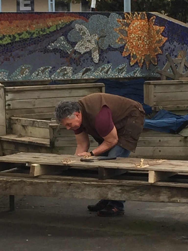 A huge “thank you” to Mr Kevin Brooke who donated a lot of the paint that was used along with the Hooper and Lee families who provided much of the wood. Matt and Stephanie Chamberlin were initiators of many of the play spaces and also managed to source much of the play equipment and structures through some very creative upcycling! Bunnings in Burswood were also amazing and incredibly generous with donations of garden edging, paint, shovels, paint brushes and many many strawberry plants along with about an hour and a half of their time!