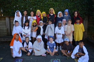 We were learning about Moses leading the Isreaelites out of Egypt to their new home. For 40 years the Israelites were in the desert. God helped them the whole time. During  Lent we need to remember that God will help us and we remember the Ten Commandments to help us