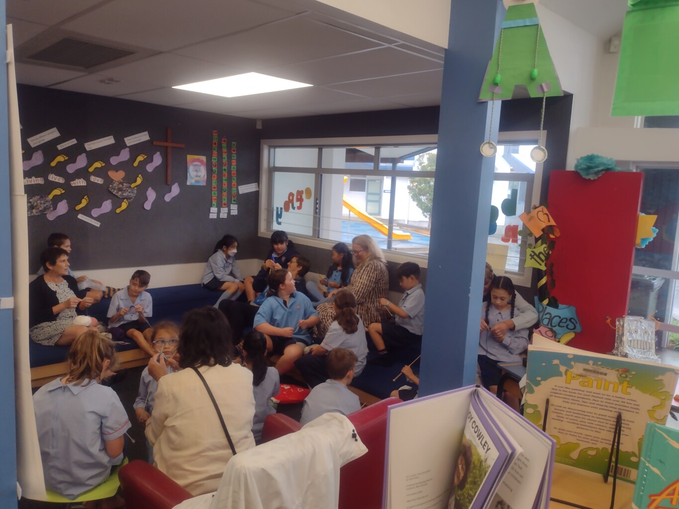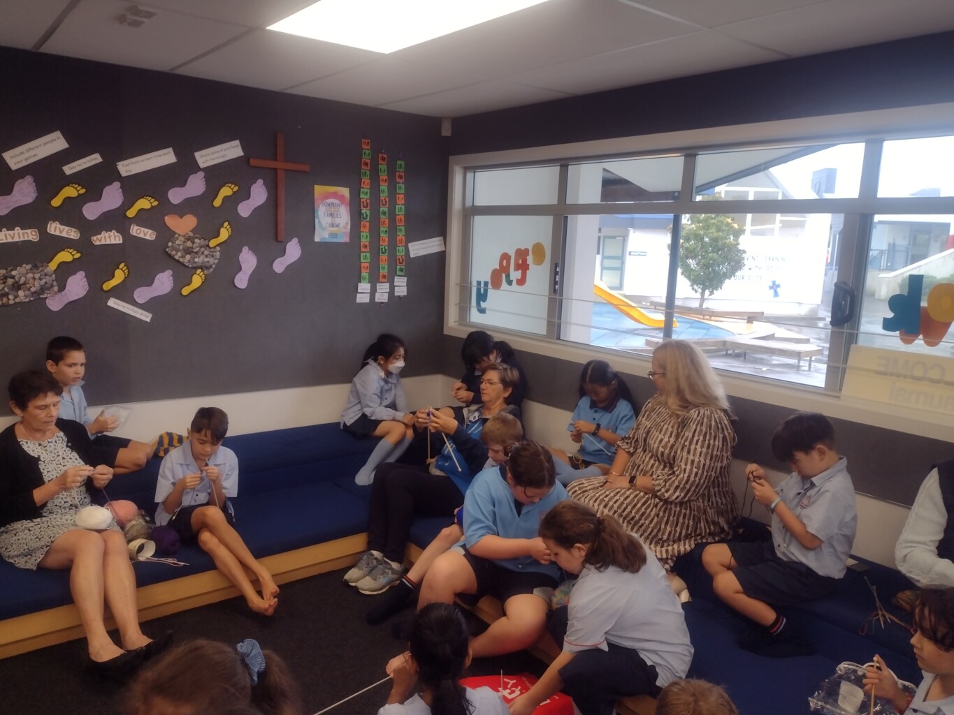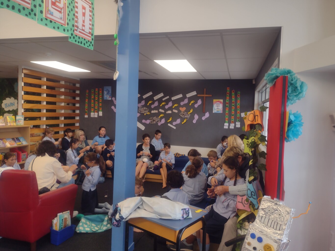 who are admitted to Middlemore Hospital. Too many children are being admitted to Kidz First Hospital with respiratory illnesses because they live in cold damp houses. Every year our school promotes the Jammies in June collections. This year the Liturgy Team will be leading the Jarmy Army. They will be encouraging students to do jobs at home to raise money for the Jammies in June collections. Along with this a knitting club will meet every Wednesday in the Information Centre.
