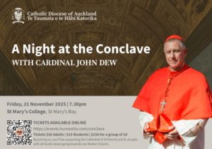 Join us for A Night at the Conclave with Cardinal John Dew at St Mary’s College, 7.30pm, Friday 21 November. Discover the mystery of the Papal Conclave through Cardinal John’s unique insights. All proceeds support the Cathedral of St Patrick and St Joseph. Details & tickets: https://events.humanitix.com/conclave