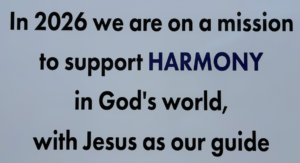 Our overarching focus for 2026 is “Harmony in God’s World.” We are using the example of Jesus as our compass to navigate what it means to be in right relationship with God, ourselves, each other, and our planet.